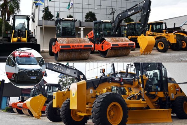 Máquinas novas, ambulância e ônibus escolares reforçam frotas do município