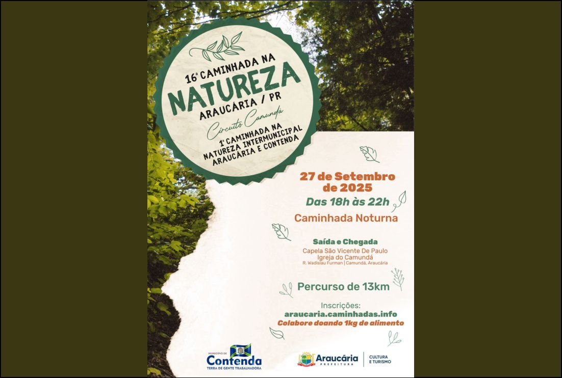 No próximo dia 27 de setembro de 2025, os municípios de Araucária e Contenda realizam um grande encontro de integração com a 16ª Caminhada na