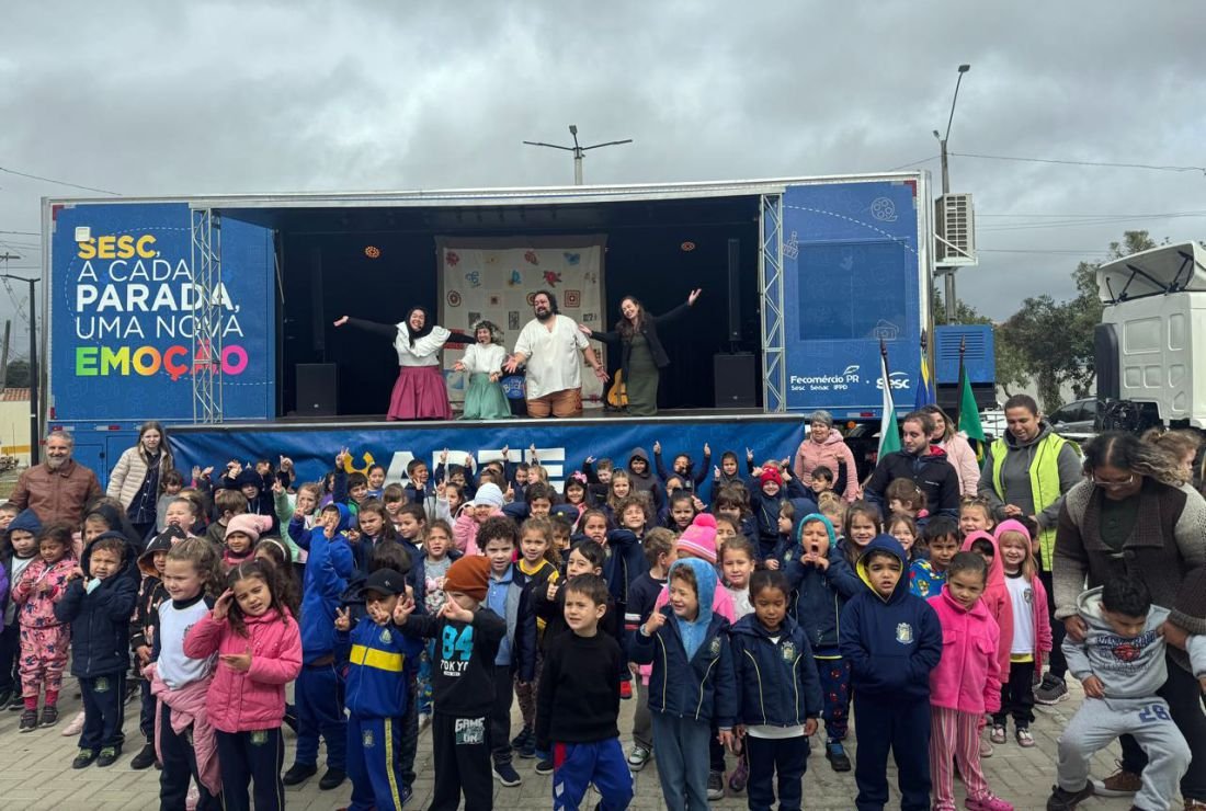 Com duas apresentações diárias gratuitas, sendo uma às 10h e outra às 14h, o caminhão Sesc Arte Móvel estacionou no município de Contenda para contação
