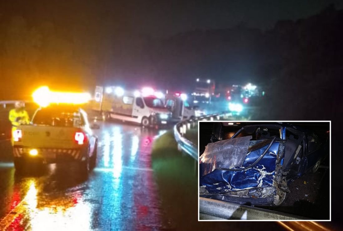 Um gravíssimo acidente de trânsito ocorrido na madrugada deste sábado (20) vitimou fatalmente três pessoas no km 177 da Rodovia do Xisto / BR-476, em