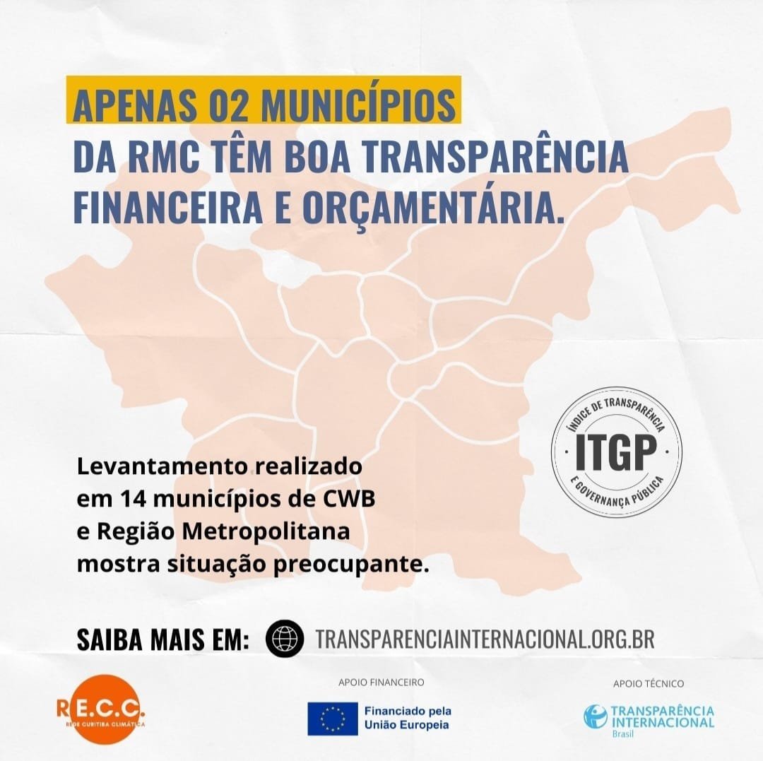 A Rede Curitiba Climática (RECC) divulgou o lançamento de um Ranking de Transparência e Governança Pública da região metropolitana de Curitiba (RMC), realizado em parceria com a Transparência Internacional Brasil. A avaliação, de acordo com informações enviadas à veículos de informação de toda a região, compara mecanismos concretos de transparência e a participação social de 14 municípios da região metropolitana.