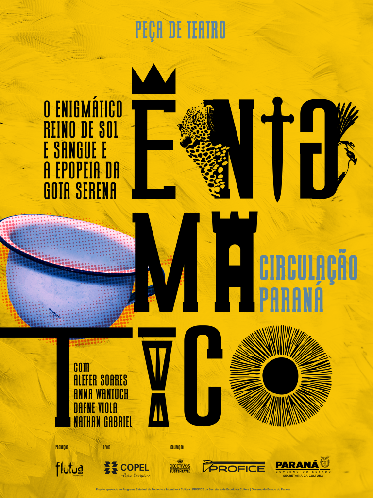 A peça “O Enigmático Reino de Sol e Sangue e a Epopeia da Gota Serena” chega à Região Metropolitana de Curitiba em abril com apresentações gratuitas e ao ar livre em Contenda (17/4, às 15h30, no Complexo Esportivo Dr. Adhelmar Sicuro, com interpretação em Libras), em Tijucas do Sul (18/4, às 16h, na Praça Antônio Koremann) e em Piên (18/4, às 20h, no Auditório da Câmara Municipal). Inspirado no universo literário de Ariano Suassuna, o espetáculo convida o público para uma experiência cênica que une teatro popular, música ao vivo e palhaçaria.