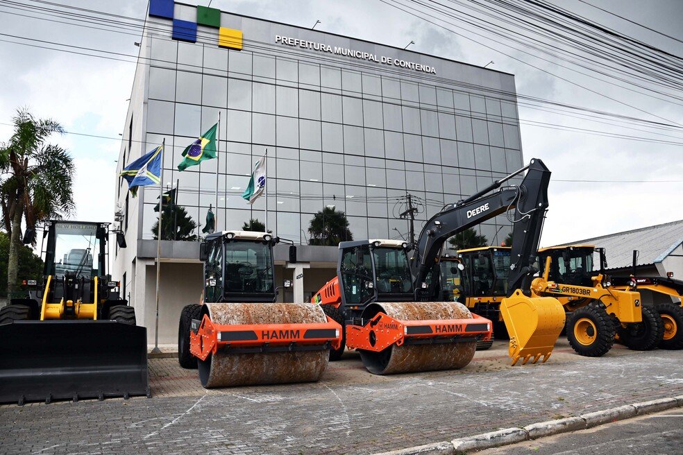 A Prefeitura de Contenda recebeu nas últimas semanas veículos e máquinas novas para reforçar as frotas da saúde, educação e setor de obras. Uma ambulância, três motoniveladoras, três caminhões caçamba, dois rolos compactadores, uma pá carregadeira, uma escavadeira hidráulica, três retroescavadeiras e dois caminhões (já anunciados), além de dois novos ônibus escolares, chegam ao município.